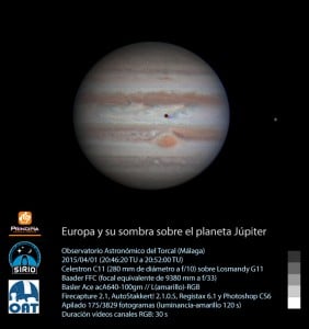 Europa y su sombra sobre el planeta Júpiter