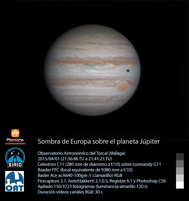 Sombra de Europa sobre el planeta Júpiter